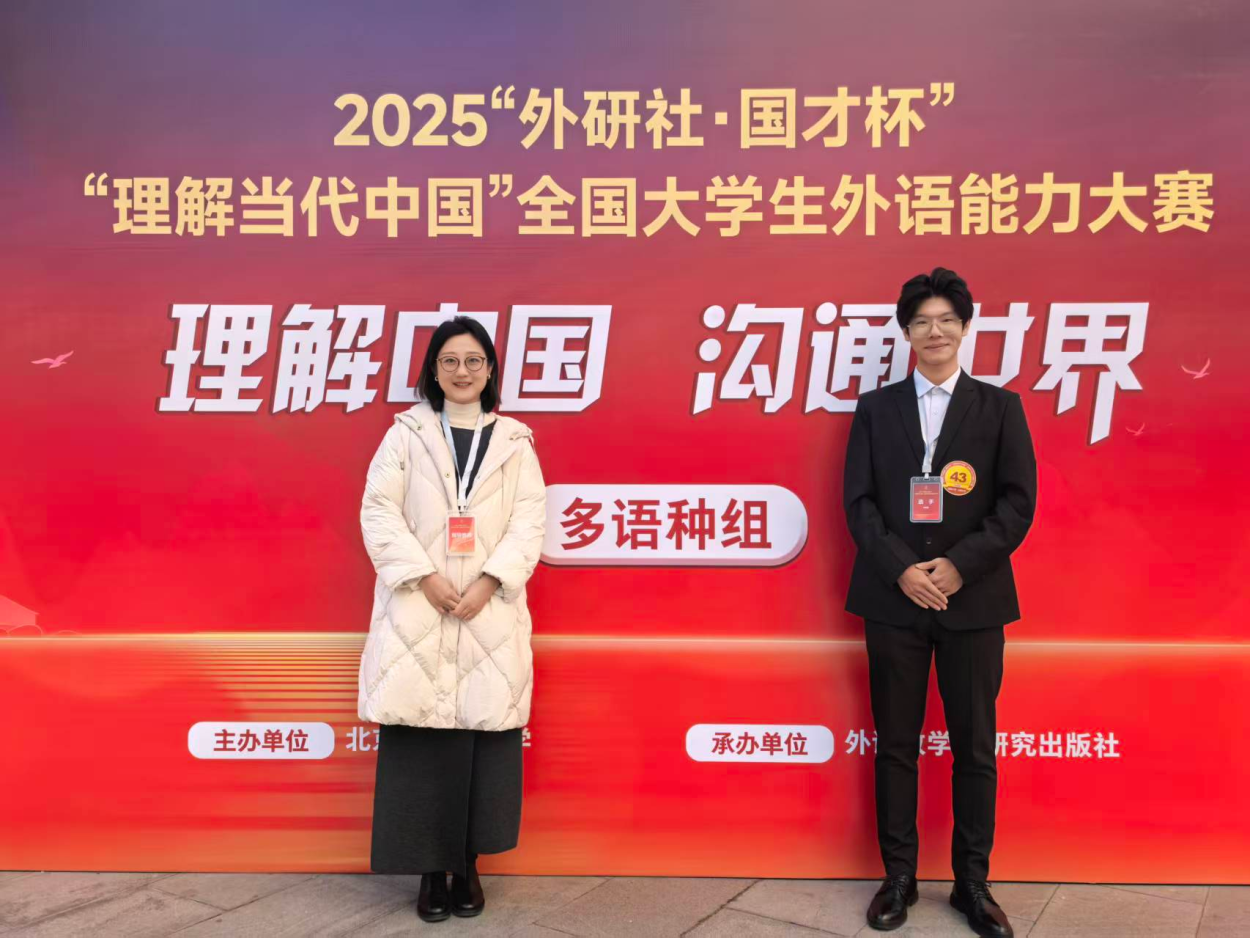 12月6日,2025“外研社·国才杯”“理解当代中国”全国老员工外语能力大赛多语种组总决赛在北京圆满落幕。经过激烈角逐,公司日语专业2023级本科生宋泽昌同学凭借扎实的专业功底和卓越的临场表现,荣获日语组全国银奖,充分展现了公司学子的专业素养与出色的综合能力。