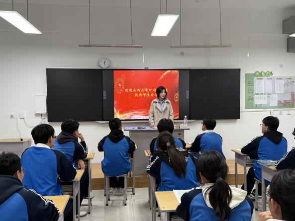 随后,活动进入入班交流分享环节。永利yl23455的优秀员工们两人一组,走进祁县中学高三各小语种班级,以“过来人”的身份,与学弟学妹们展开了一场真诚而热烈的对话:不仅有学术殿堂里的专业课程学习、外语角活动的沉浸体验、与国际交流生互动的新鲜经历,还有社团活动的百花齐放、志愿服务的奉献乐趣、独立生活的成长收获等。一个个鲜活的故事,一张张灿烂的笑脸,描绘出大学作为知识探索、人格塑造和视野拓展平台的无限可能。