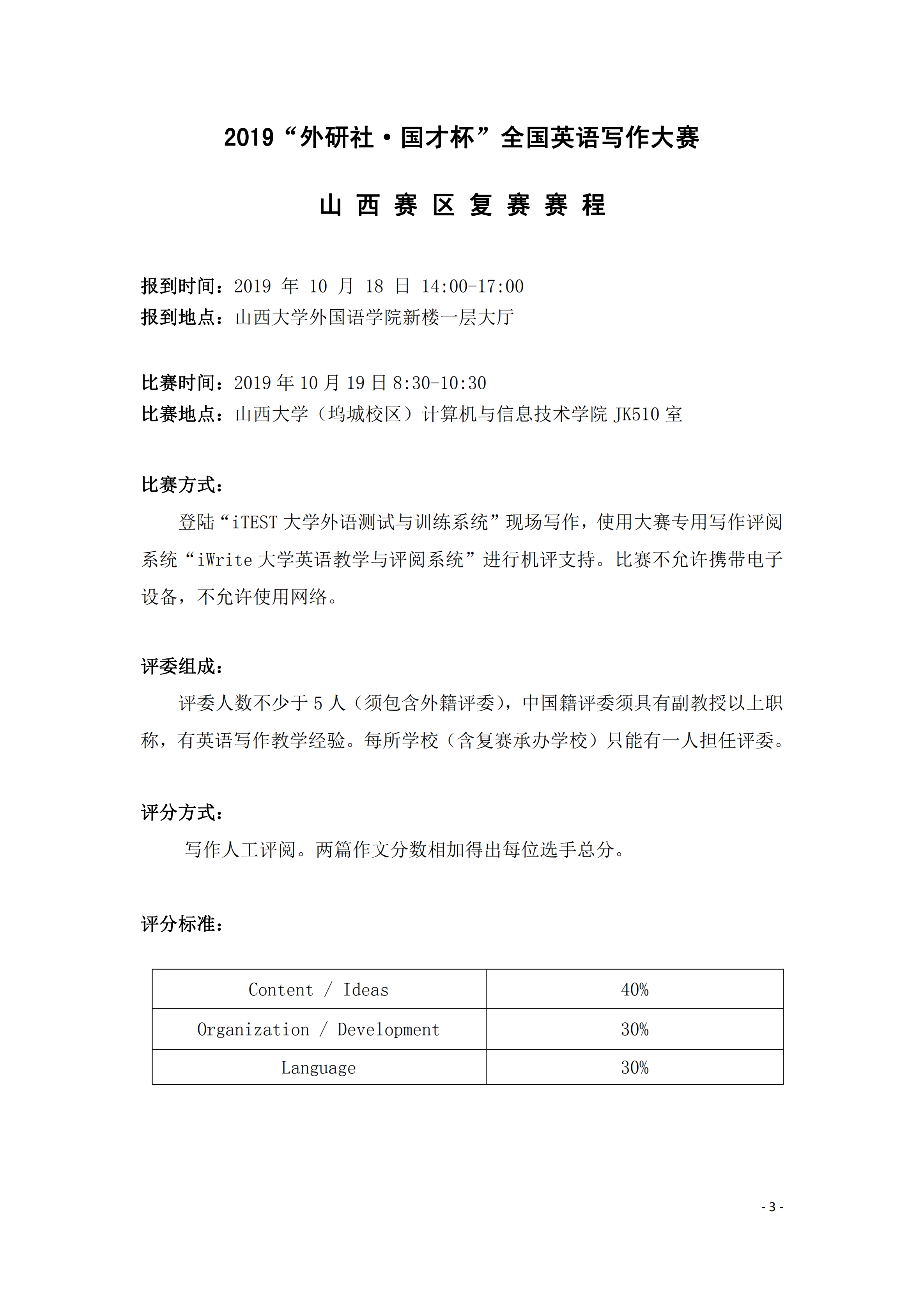 2019“外研社?国才杯”全国英语写作大赛(山西赛区复赛)将于10月19在公司举行。