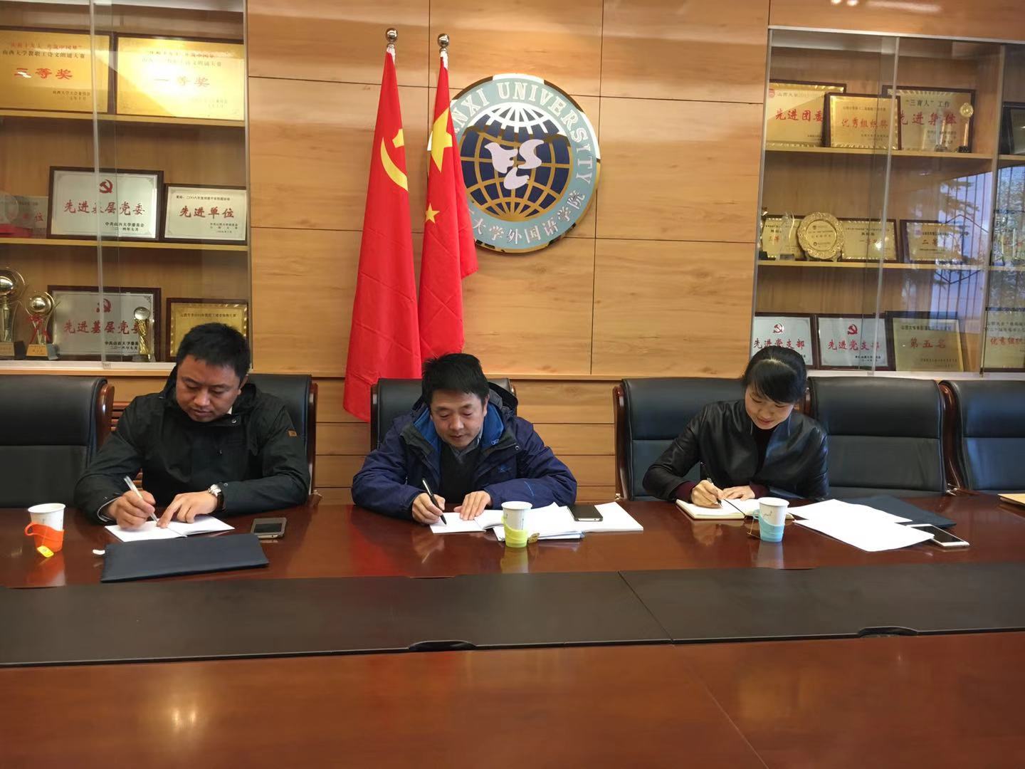10月31日上午10点,公司发展党员工作专项检查第四检查组在301报告厅对公司发展党员工作进行检查交流,公司党委书记柳春原、党委副书记郁新春、党办主任王小兵出席。