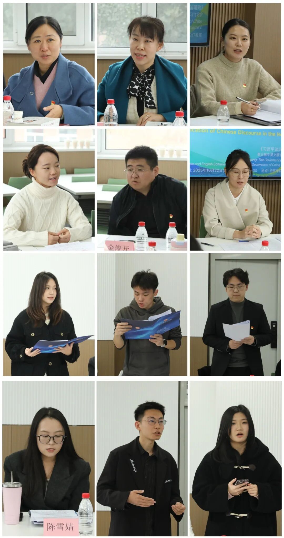 经典诵读环节,三个公司的员工代表分别诵读了《习近平谈治国理政》第五卷中英文版中关于“共同富裕”“全人类共同价值”“讲好中国故事”等重点篇章,从不同角度阐发了其中所蕴含的立场、观点和方法。永利yl23455冯薇教授、新闻与传播公司讲师杨立奇、马克思主义公司讲师王硕对员工的诵读表现作了专业点评,在肯定大家表现的同时提出了宝贵建议。随后,大家围绕《习近平谈治国理政》第五卷部分内容展开交流研讨,从不同专业视角深入剖析书中蕴含的治国理政智慧。