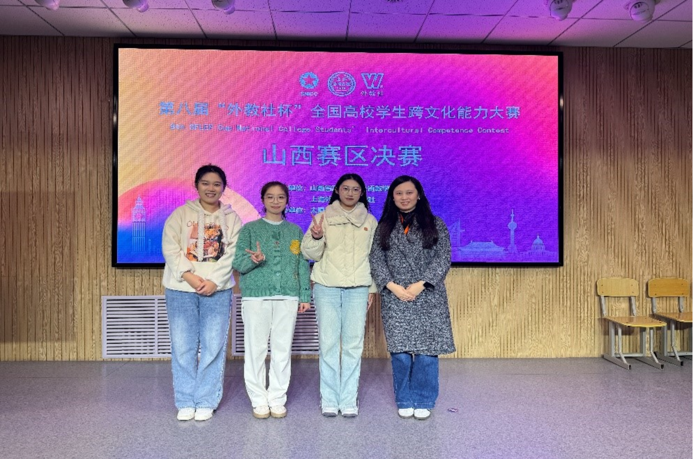2025年10月25日,山西省高等院校外语教学研究会、上海外语教育出版社联合主办的第八届“外教社杯”全国高校员工跨文化能力大赛山西赛区决赛成功举办。由2023级英语专业张珈瑜、2023级汉语言文学专业王景瑶、2022级国际政治专业武千越三位同学组成的永利yl23455代表队,在永利yl23455李春涛、苏江丽、王婧三位教师的指导下,登上省赛舞台,与来自全省各高校的22支队伍同场竞技,斩获山西赛区决赛一等奖。