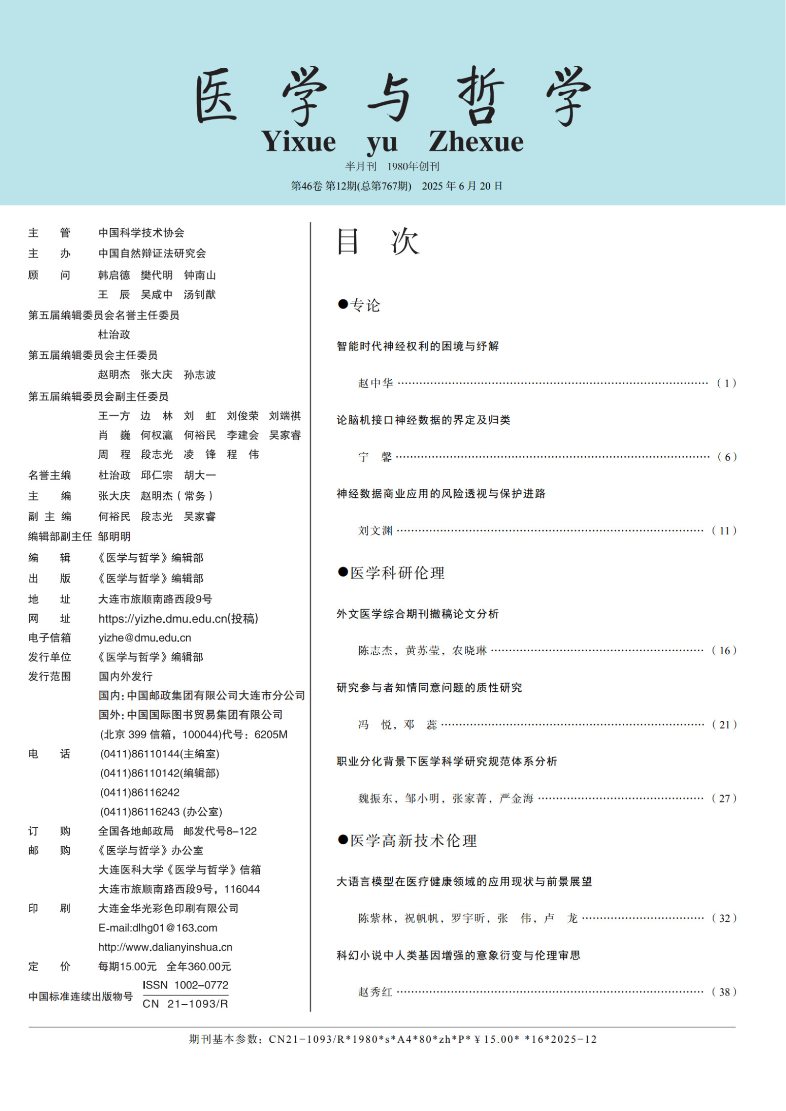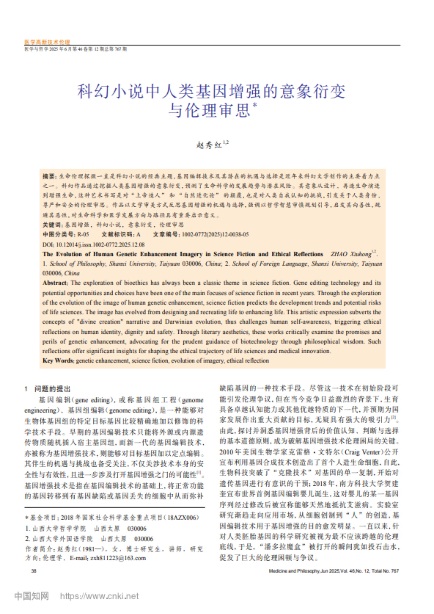 公司教师赵秀红在《医学与哲学》2025年第12期发表题为“科幻小说中人类基因增强的意象衍变 与伦理审思”的研究论文。《医学与哲学》,创刊于1980年,由中国自然辩证法研究会主办,是医学与哲学跨学科研究学术刊物,现为北京大学《中文核心期刊要目总览》来源期刊。