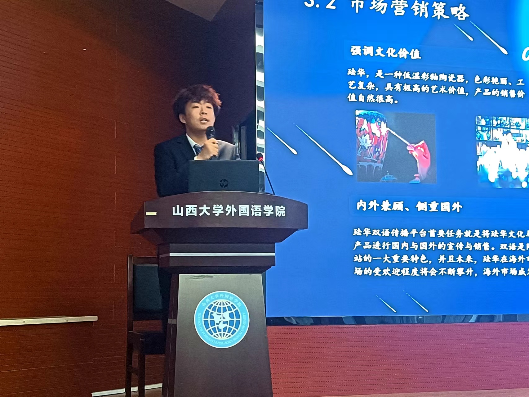 参赛过程中,各项目团队成员思路清晰,沉着冷静,娓娓而谈。经过项目介绍、作品展示和评委提问等环节紧张的角逐,最终《丝路相遇——打造一带一路沿线中国故事立体传播模式》《 “译”路生“华”——山西珐华双语传播领航者》《语悦静乐——老员工支教模式赋能乡村振兴》等排名各赛道各组前60%的项目顺利进入了校级复赛。