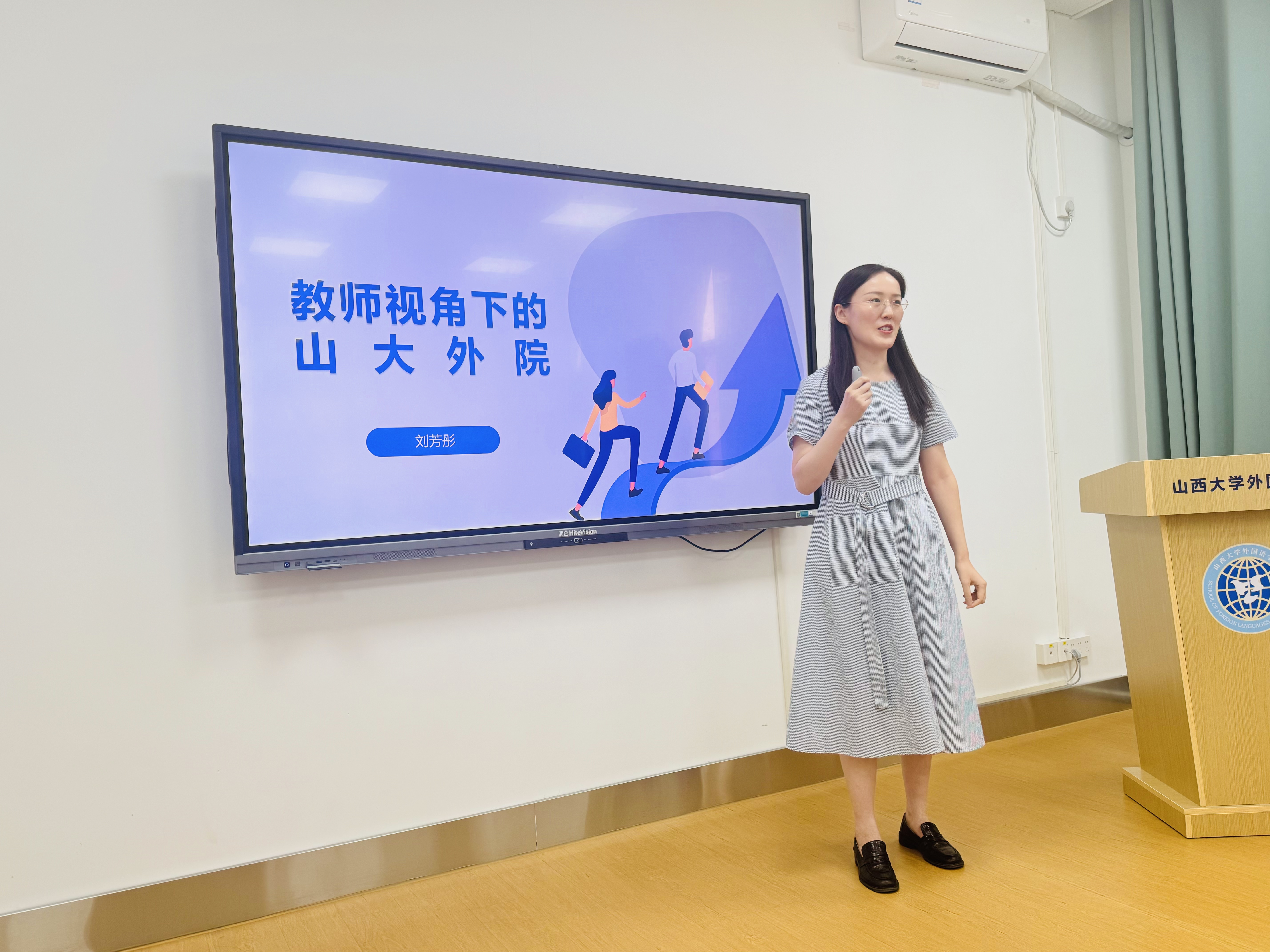 随后,荆素蓉副经理、郝琳主任、李枫副经理分别就翻译系、英语系和公共外语教学部的具体情况进行了专业介绍。内容涵盖各教学部门的专业定位、团队队伍建设、课程体系设置、教学科研成果以及人才培养特色等方面,为意向人才提供了详实的参考信息。
