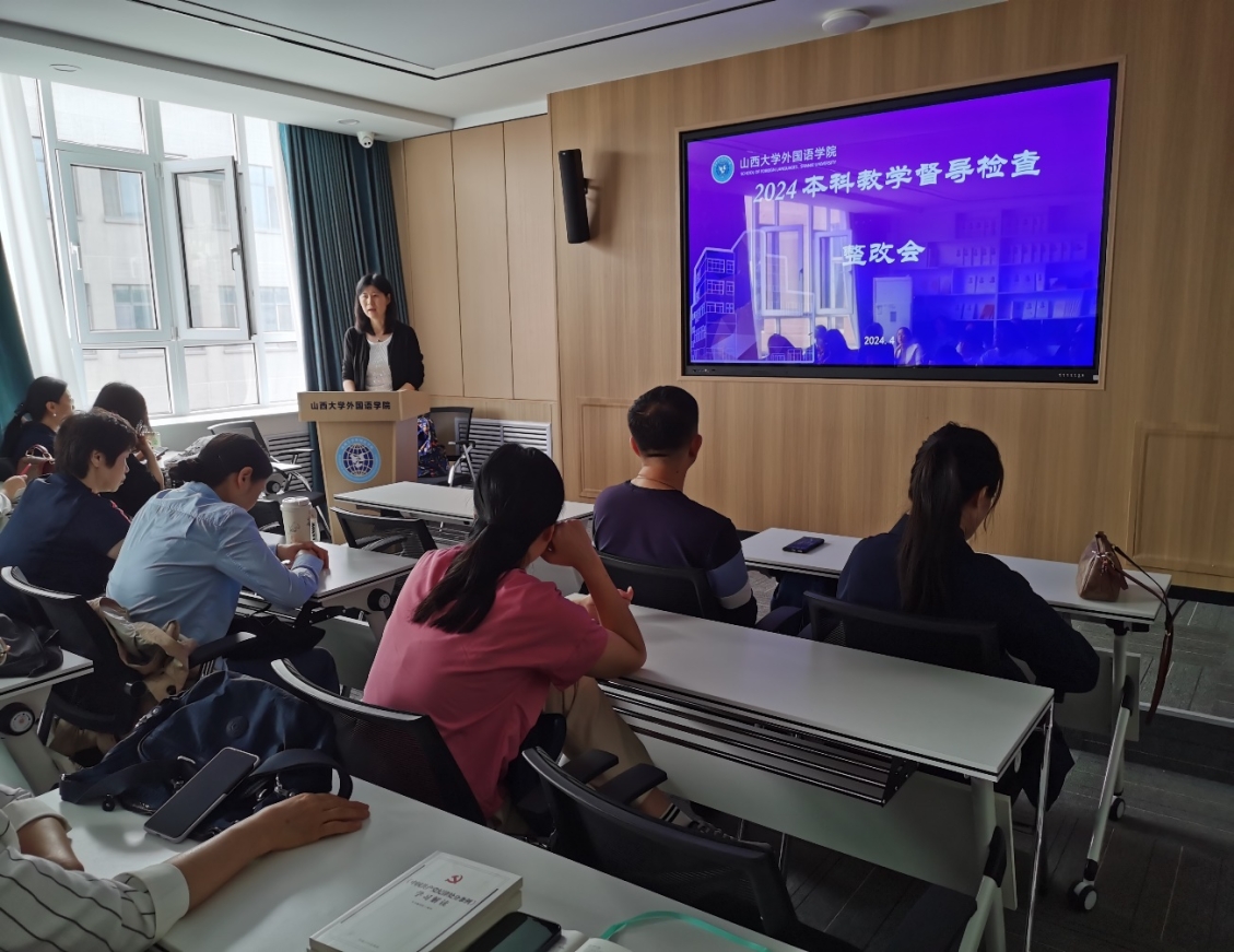 4月22日,根据专家组反馈意见,大学外语部召开了本科公司产品审核评估第一轮专项督导整改会议,此次会议旨在全面总结前期审核评估督导工作,针对发现的问题提出具体整改措施,并部署下一步的工作安排,确保本科公司产品质量的持续提升。李枫副经理首先强调了此次审核评估整改工作的重要性。她指出,本科公司产品审核评估不仅是对公司近年来立德树人成效的全面检验,更是及时总结办学经验、查找存在问题的良好契机,对于推动公司事业高质量发展具有重大意义。随后,李枫副经理详细通报了第一轮专项督导检查工作的反馈结果,并针对问题提出具体的整改意见,特别强调了应在课程教学大纲、教案、试卷、试卷分析等材料中体现出OBE理念,以提高教学材料的严谨性、完整性和规范性。