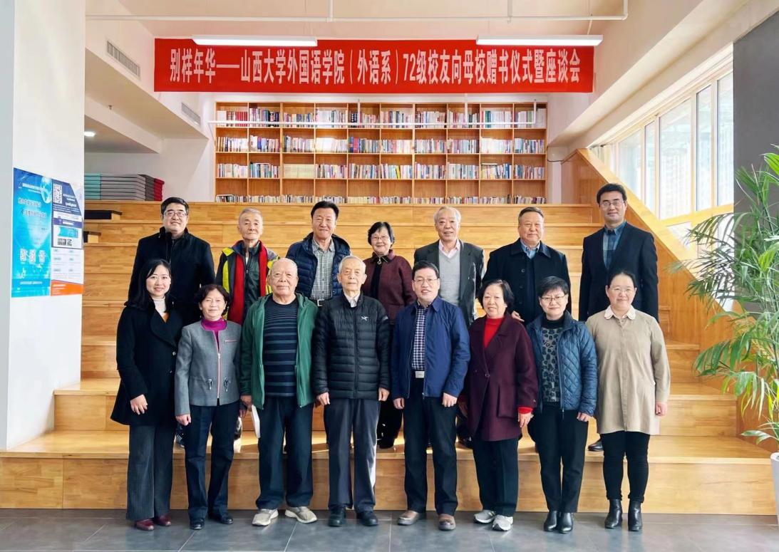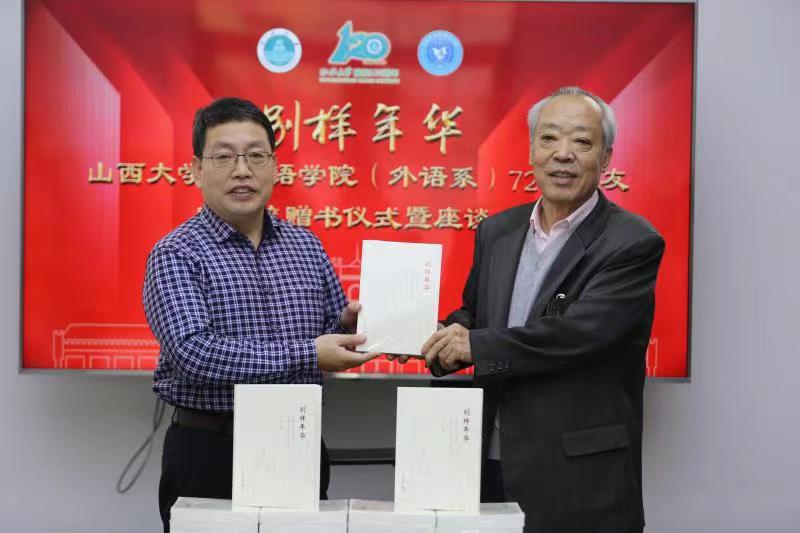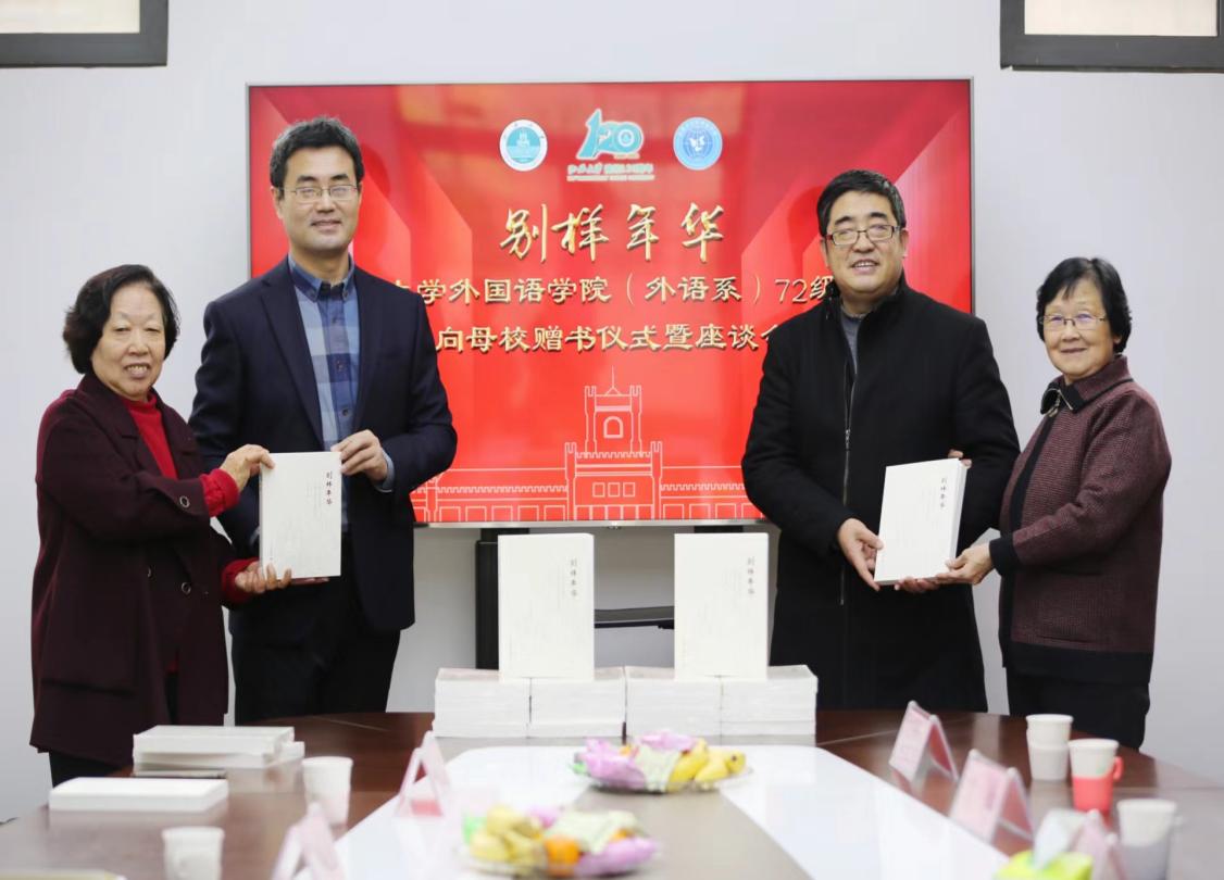 借此次赠书仪式之机,72级员工们还特别邀请了当年为其授课的王正仁和苏湘晋老师。曾长期担任永利yl23455经理的王正仁教授即兴发言,对当年72级员工的团结奋进、刻苦好学的精神给予了充分的肯定和赞许。他还十分关心山大外语学科的发展,殷切希望年轻一代能发扬外院历史上常风、关其桐、彭阜民、高健、杨德友等几位“大先生”开创的优良传统,更加开拓进取,抓住机遇,勇毅前行,为外语学科再创辉煌。最后,原山西省商务厅厅长王淑珍女士代表外语系全体72级员工发言,表达了对母校120周年校庆热烈的祝贺,也代表72级同学对母校和恩师的培养教育表示了由衷的感谢。在致辞中,王淑珍员工特别讲述了《别样年华》一书的创作初衷。该书由永利yl23455外语系首届工农兵学员集体创作,40万字的书稿犹如历史的活化石,人们可从中窥见一个特殊历史时期之一斑。写作此书,是72级员工对从母校毕业后服务于社会数十年的总结,也是给母校和恩师的一个汇报。