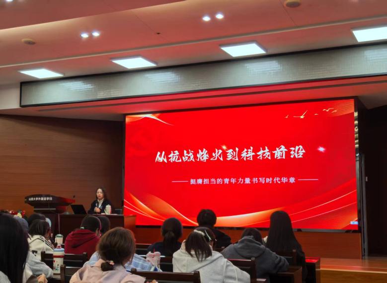 逯老师说,80年前的中国青年在民族存亡之际挺身而出,80年后的今天,青年一代站在新的历史起点,肩负着实现第二个百年奋斗目标、推进中国式现代化的时代使命。当前,我国科技事业取得历史性成就,这背后离不开一代又一代青年科研工作者的接续奋斗。讲座还结合外语专业的实际,分析了当前翻译行业面临的挑战与机遇,鼓励同学们不仅要掌握语言技能,更要拓展跨学科视野,成为具备国际竞争力的复合型人才,不懈努力,接续奋斗。