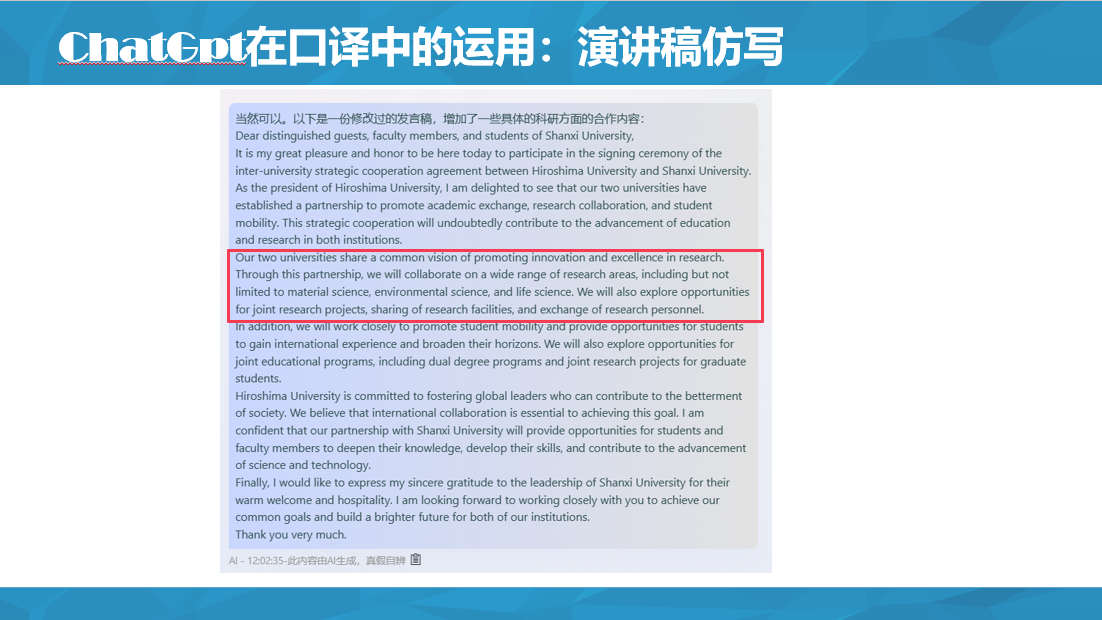 从口译的角度来讲,Chat GTP可以在译前环节完成术语提取、文献综述总结、演讲稿仿写等多种有着较高难度、较高精度的工作。