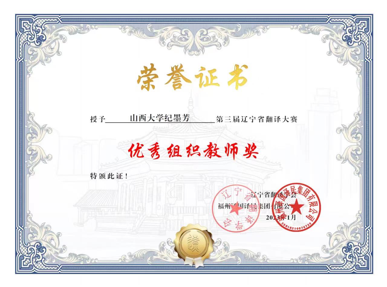 近日,第三届辽宁省翻译大赛落下帷幕。公司2019级本科英语专业朱静雅同学获汉译英三等奖,英语、翻译、日语等本科专业和翻译硕士英语笔译专业共二十余名同学获优秀奖。同时,公司翻译专业纪墨芳老师被授予大赛“优秀组织教师奖”,公司被授予大赛“优秀组织奖”。