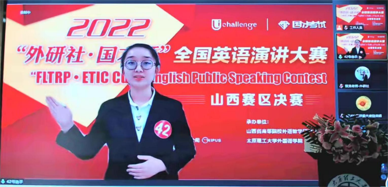 王郑馨同学参加演讲大赛山西赛区决赛,荣获一等奖