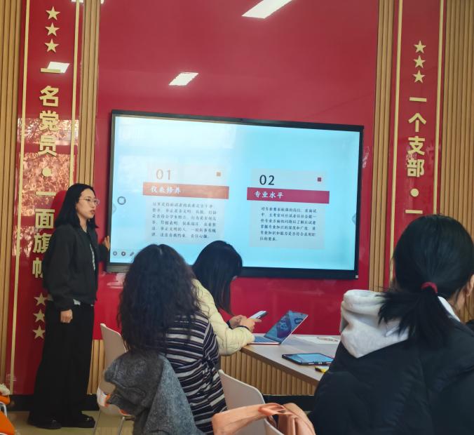 在引导同学们扎实掌握面试核心知识后,周佩如、韩贝贝和李苗苗三位老师精心组织了模拟面试实操环节:将同学们分为两组,由老师扮演面试官角色,开展真实面试场景演练。实操结束后,老师即刻回归指导身份,针对每位同学的现场表现进行一对一精准点评,既肯定亮点、也点明不足并给出优化建议,实现“课堂知识吸收—实战场景应用—复盘沉淀提升”的完整闭环,切实巩固学习成效。