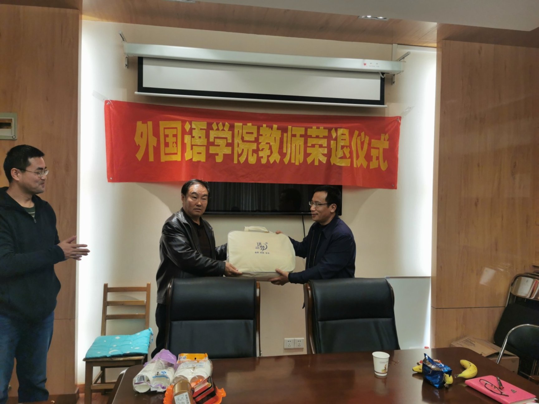荣退仪式上,赵建常主席代表工会向退休教师张序赠送了礼物。