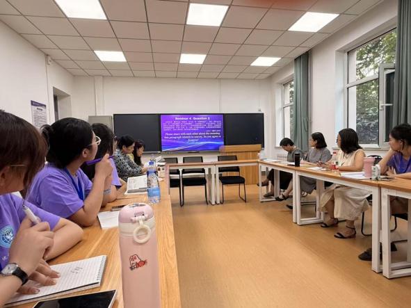 导师面对面:分方向进行的导师面对面交流活动中,营员与导师零距离互动,学术火花频频迸发。每位导师结合自己的研究方向与营员们进行了分享交流。学科基础知识、前沿研究动态以及人工智能时代外语学科的发展前景都成为导师与营员们对话交流的话题。在专业能力考查环节,营员们就导师提出的各种问题做了精彩的回答。营员们表示,与学识渊博的导师们零距离交流,是本次夏令营最珍贵的经历;他们的真知灼见和殷切期望,如同一盏明灯,照亮了未来的学术之路。