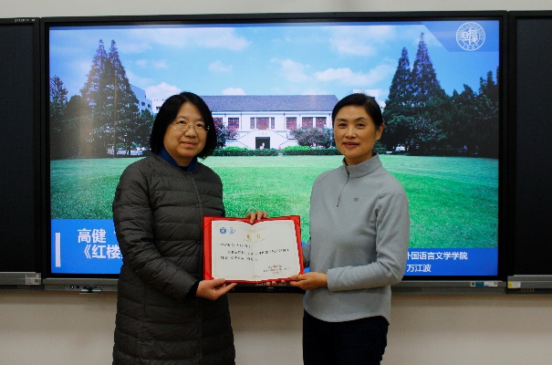 活动伊始,张艳丰教授代表公司对万江波教授的莅临表示热烈欢迎,并详细介绍了万江波教授在典籍翻译、辞典编纂等领域深厚的学术造诣与丰硕的研究成果,其后代表高健翻译研究中心为万江波教授颁发了研究员聘书,感谢她对高健翻译研究中心及公司翻译学科发展的支持。