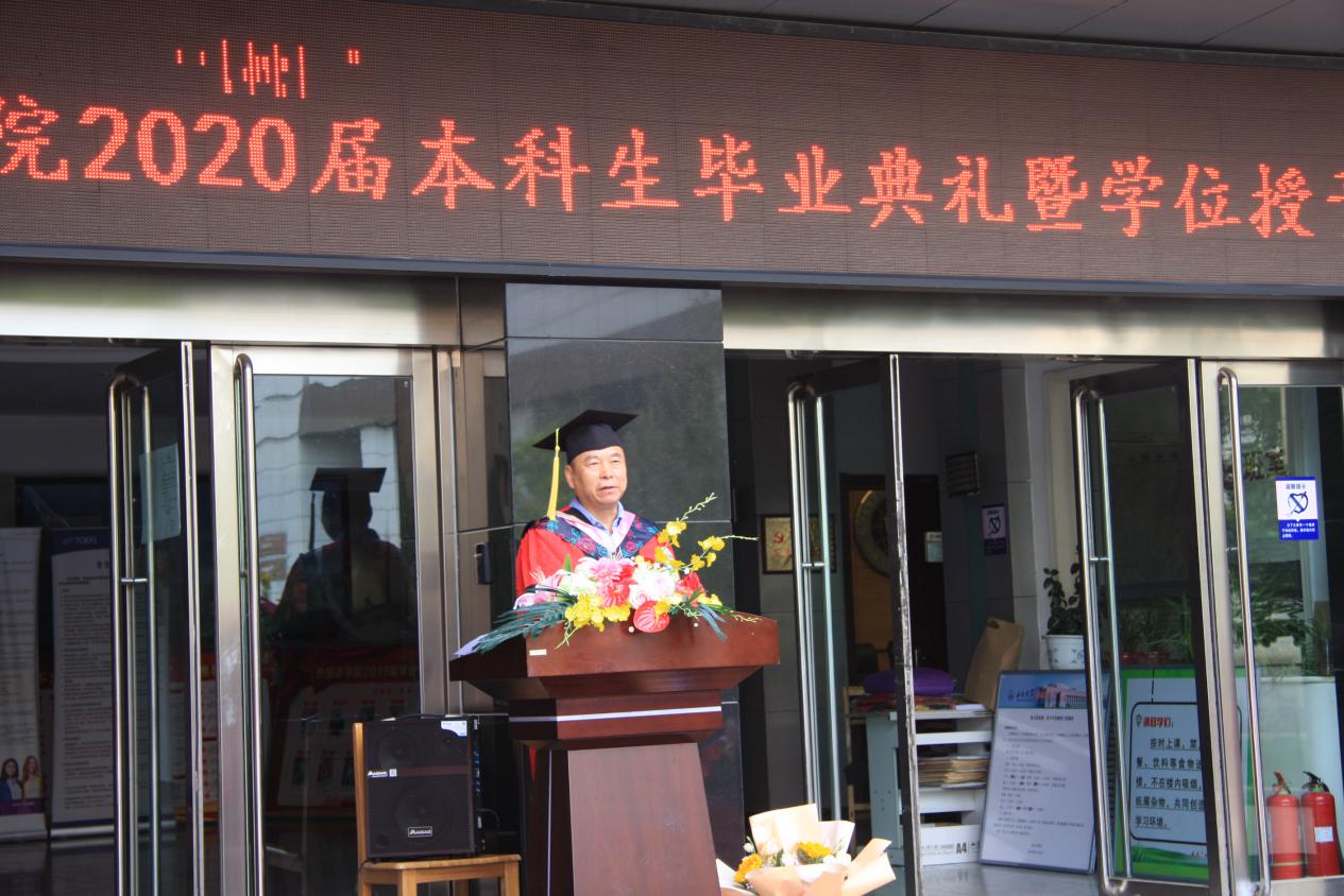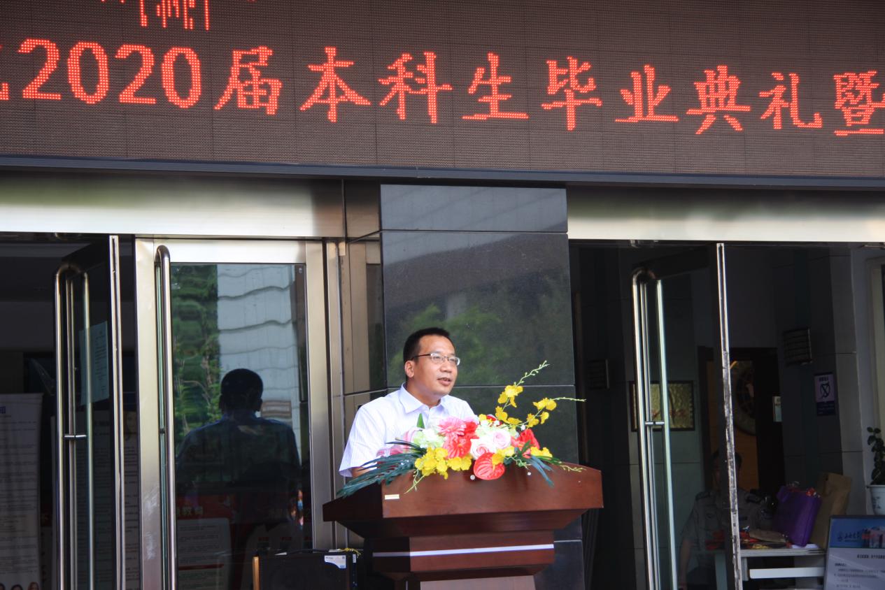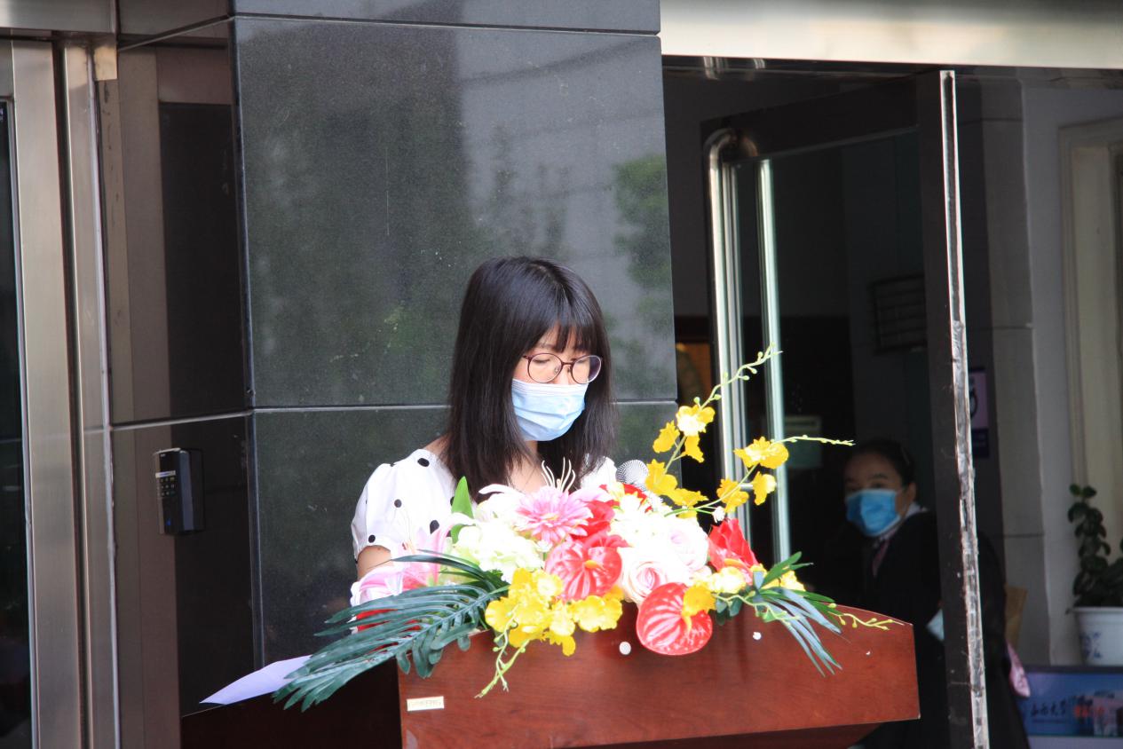 院领导和各位老师,在2020届毕业生即将走出校园,走向社会之际,代表公司送上了谆谆嘱托,也寄于了殷殷厚望。近半年以来,我们师生和全国人民一道同抗疫情,为最美逆行的医护人员感动,为飞蛾扑火的志愿者们动容,也送去了对病者和逝者的爱心与关怀。通过这场疫情,同学们提高了免疫能力,增强了抗压能力,锤炼了意志和坚持能力。经过四年来师生的共同努力,公司2020届128名同学,有理想有道德有文化有纪律,树立远大目标,学习勤奋努力,取得了骄人的成绩,为自己的人生找到了新方向新起点新平台新目标。希望同学们走出大公司门后,常怀感恩之心,充满激情和梦想,做最好的自己,为公司增光,为母校添彩!
