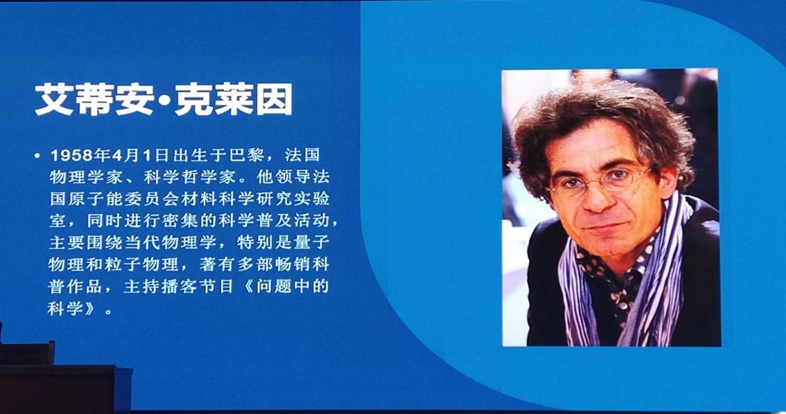 在第二部分,任老师对物理学家艾蒂安· 克莱因进行了简单介绍并概述了《爱因斯坦国度》一书的创作背景。艾蒂安·克莱因是法国著名的物理学家和科学哲学家,他曾通过体验爱因斯坦生命中重要的城市而写下《爱因斯坦的国度》这本传记。