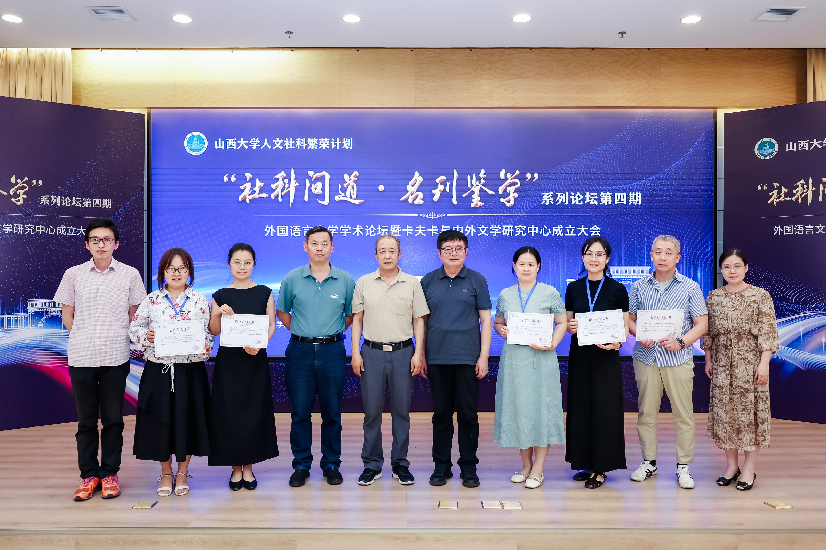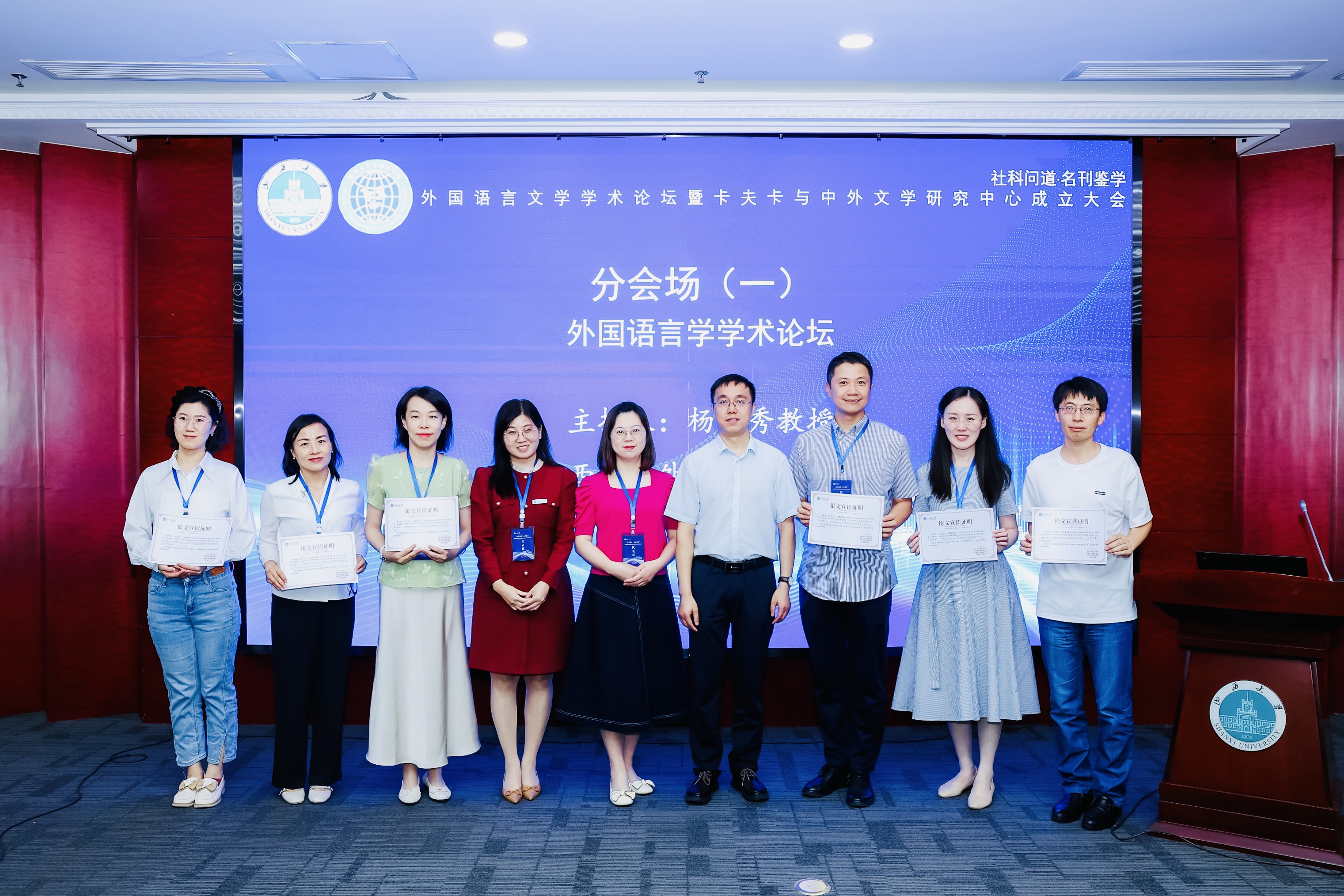 大会在热烈的掌声中宣告闭幕。本次会议宣告国内首家卡夫卡与中外文学研究中心正式挂牌成立,展示出欣欣向荣的发展动力以及团结共进的建设精神。以此为契机,中心将围绕卡夫卡研究、中外文学研究等主题开展学术交流活动,探索外国语言文学研究,推进永利yl23455外语团队建设,为外国文学研究的发展繁荣贡献力量。