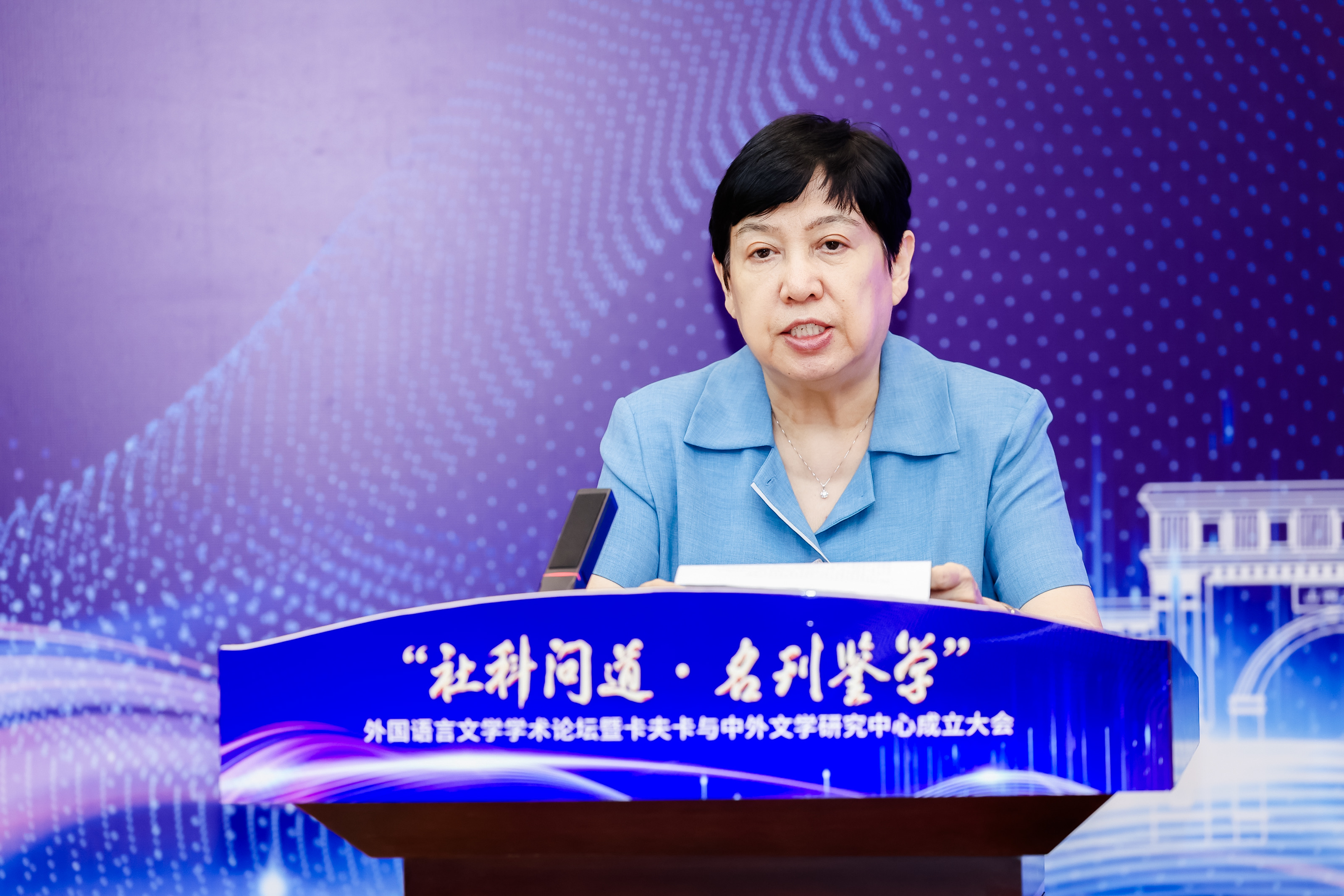 曾艳兵指出,召开外国语言文学学术论坛并成立研究中心,与文明互鉴的时代精神相一致。2023年6月2日,习近平总书记在文化传承发展座谈会上的讲话中指出:“我们比以往任何一个时代都更有条件破解‘古今中西之争’,也比以往任何一个时代都更迫切需要一批熔铸古今、汇通中西的文化成果。”曾艳兵将此次会议视为大幕开启的标志,希望中心的成立能为外语学科的发展带来一个燃点,让外国文学研究的社会能量和学术资源在永利yl23455这个舞台上聚集,为中外文学交流与文明互鉴作出贡献。曾艳兵强调,在永利yl23455成立的卡夫卡与中外文学研究中心是国内首家以卡夫卡研究为核心的学术研究机构,将成为卡夫卡学术史上的一个重要事件。