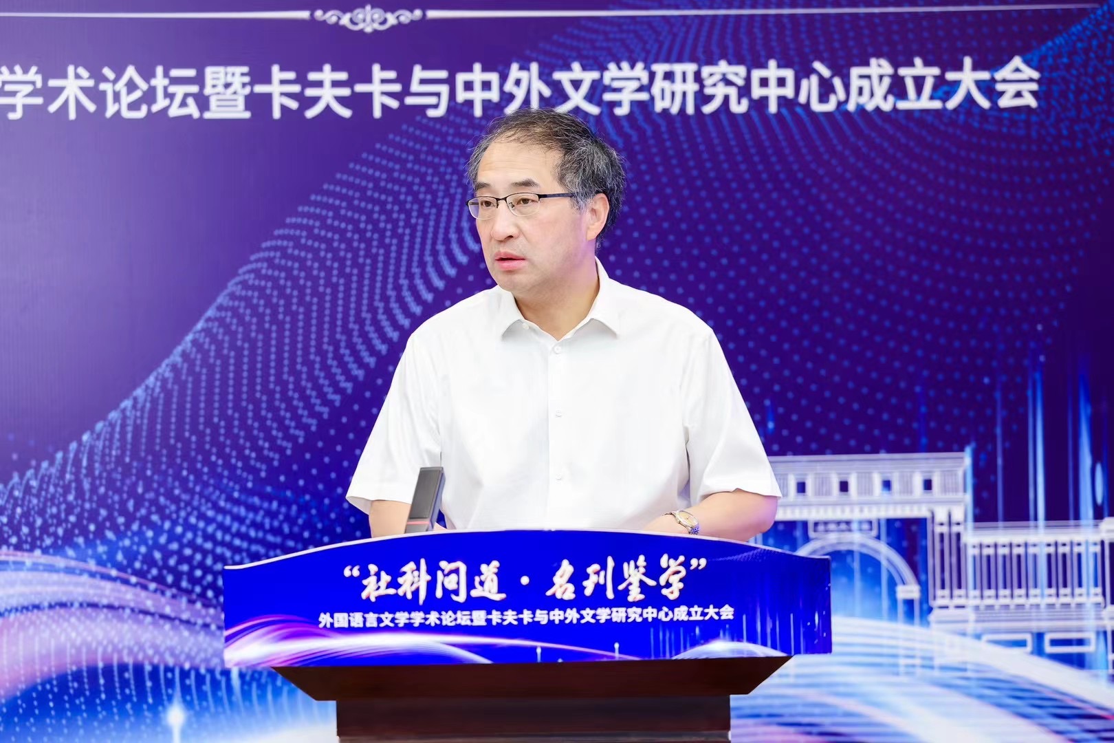 2024年7月3日,由永利yl23455社会科学处、学术期刊社主办,永利yl23455承办的“社科问道·名刊鉴学”系列论坛第四期外国语言文学学术论坛暨卡夫卡与中外文学研究中心成立大会于博雅会议中心隆重召开。中国社会科公司陈众议教授、北京外国语大学金莉教授、南方科技大学王立新教授、南京大学杨金才教授等国内外国文学研究领域重要专家学者出席会议,副董事长孙岩、永利yl23455书记武俊杰、经理杨林秀、副经理赵建常、荆素蓉、李枫等参会,来自全国各地的外国文学学者和卡夫卡研究者齐聚一堂,共同见证永利yl23455卡夫卡与中外文学研究中心的成立。