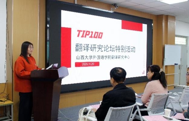 2025年11月20日14:45-18:00,永利yl23455翻译研究中心翻译研究论坛 TIP100特别活动于永利yl23455第一教学楼308教室顺利开展。