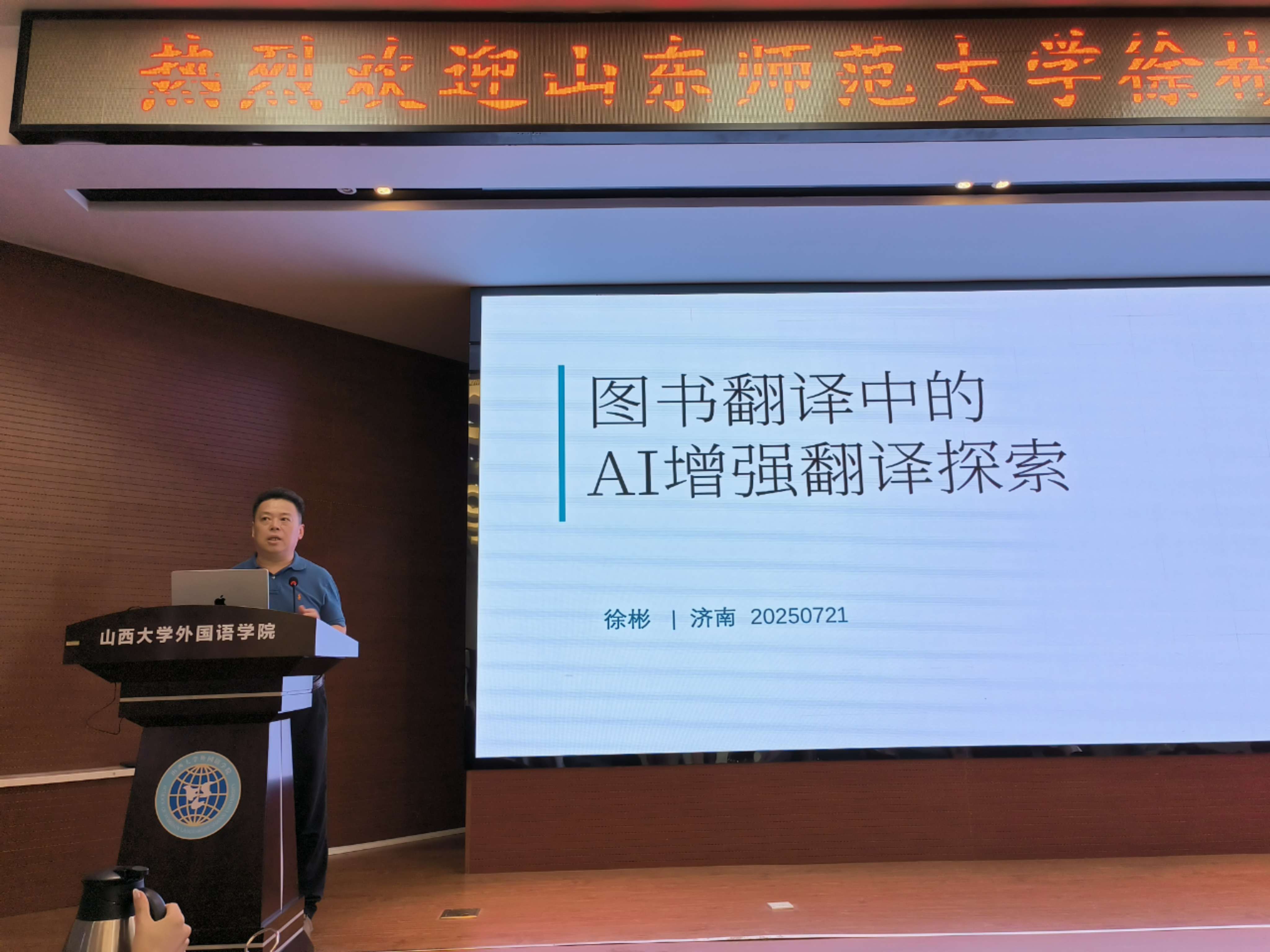 2025年9月24日下午14时30分,永利yl23455翻译研究论坛第97期在第一教学楼301报告厅成功举行。本次论坛特邀山东师范大学永利yl23455教授、翻译硕士中心主任、世界翻译教育联盟(WITTA)常务理事、山东省译协翻译技术委员会主任徐彬担任主讲人,以“图书翻译中的AI增强翻译探索”为主题,展开了一场深入而精彩的学术讲座。