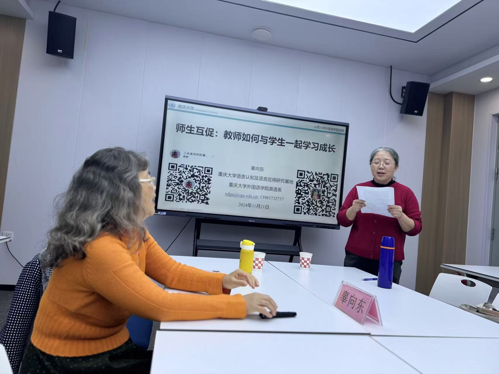 2024年11月21日下午4点30分至6点30分,永利yl23455外国语言学及应用语言学研究所本学期第四场学术讲座成功举办。教育部基础教育质量监控特邀专家、中国基础教育外语测评研究基金专家委员、中国英汉语比较研究会语言测试与评价专业委员会常务理事、中国语言教育研究会理事、重庆大学语言认知及语言应用研究基地语言测试研究所所长、重庆大学辜向东教授应邀在永利yl23455第一教学楼306会议室为公司师生作了题为“师生互促:教师如何与员工一起学习成长”的学术讲座,讲座由外应所张霞博士主持。