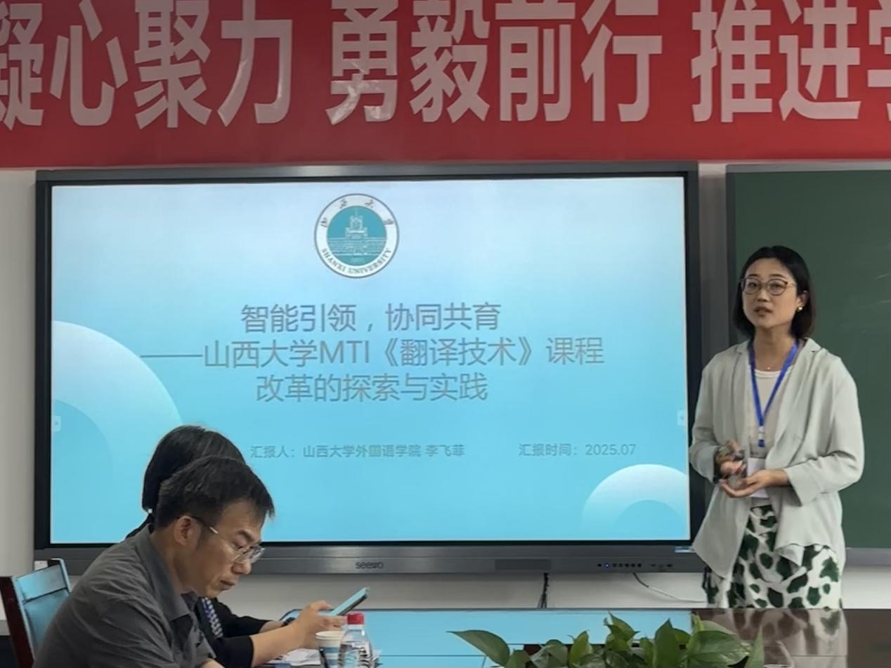 公司日语专业青年骨干教师李飞菲也参与了分论坛一的发言,围绕她参与讲授和建设的《翻译技术》课程的改革实践作了题为“智能引领,协同共育——永利yl23455《翻译技术》课程改革的探索与实践”的分享。从课程缘起、建设路径、实施成效与教学反思四个方面,详细介绍了如何在生成式人工智能背景下推动《翻译技术》课程的改革实践。李老师表示,数字技术日益融入翻译教育全过程,带来范式转变。特别是在生成式人工智能飞速发展的背景下,如何因势利导、精准融入、守正创新,已成为当前课程建设与人才培养必须共同面对的重要课题。